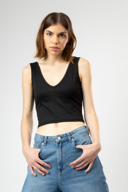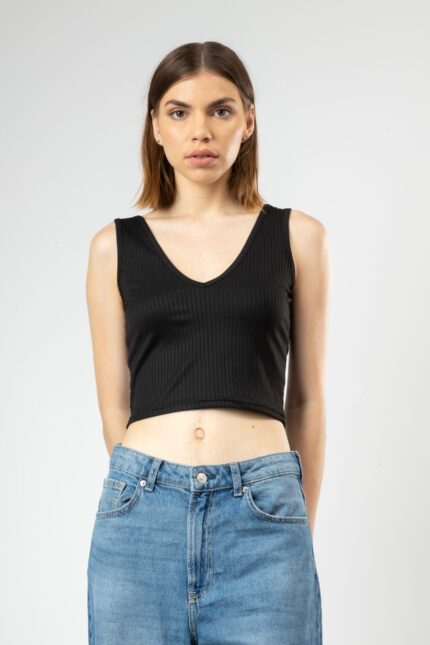 V-Neck Spaghetti Strap Crop Top for Women Black