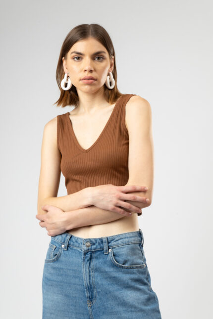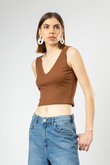 V-Neck Spaghetti Strap Crop Top for Women Coffee