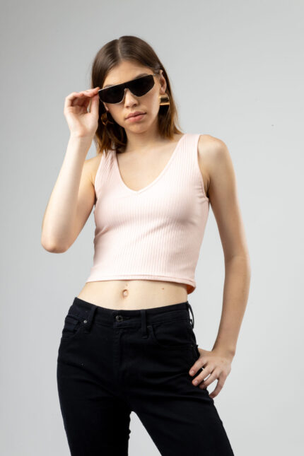 V-Neck Spaghetti Strap Crop Top for Women Coral Pink