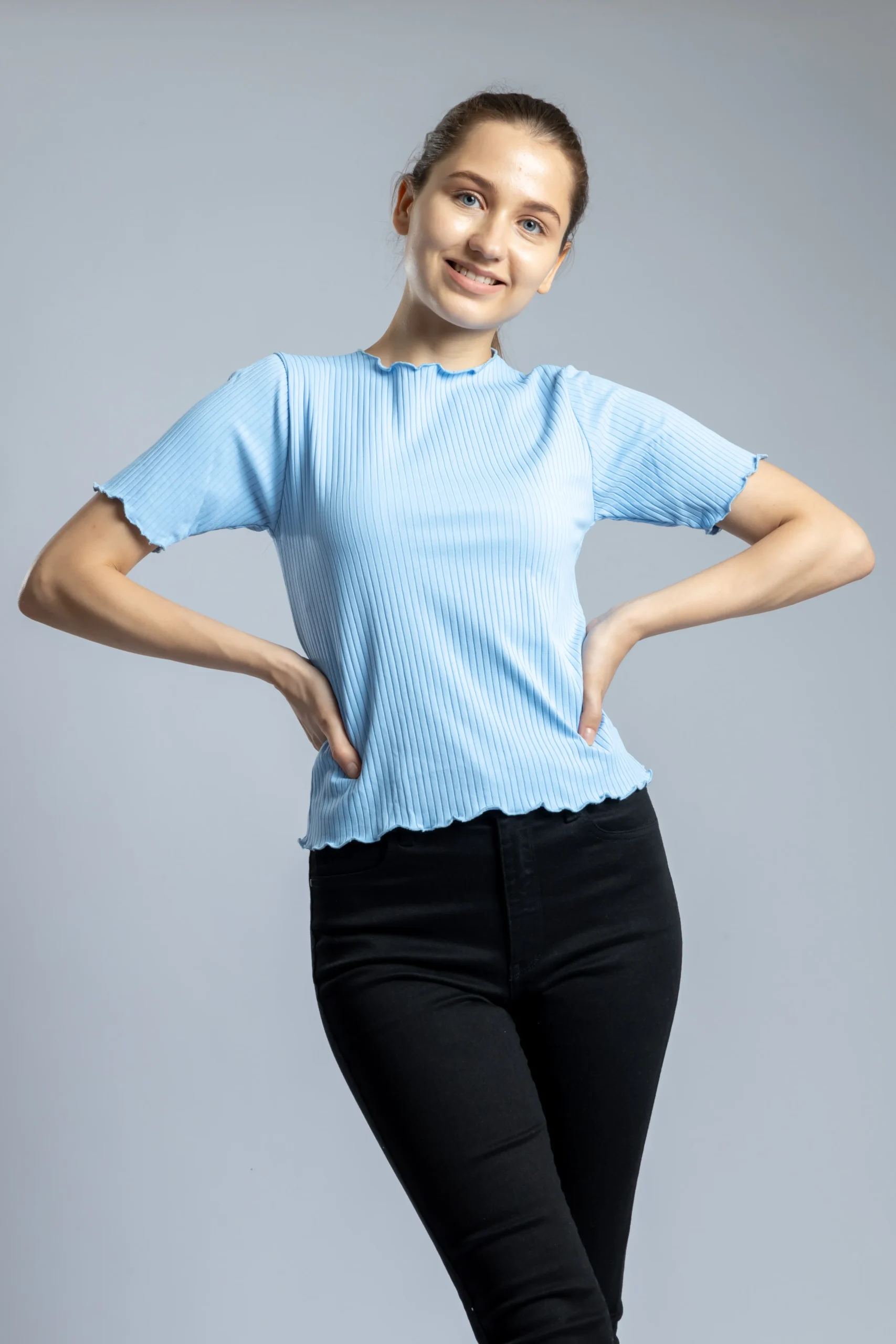 “Discover effortless style and comfort with PYR8’s versatile everyday essential. Expertly crafted from a soft ribbed knit blend of 65% polyester and 35% cotton, this top offers a lightweight and breathable feel that keeps you comfortable all day long. The stretchable fabric ensures a flattering fit while allowing freedom of movement for your busy lifestyle.