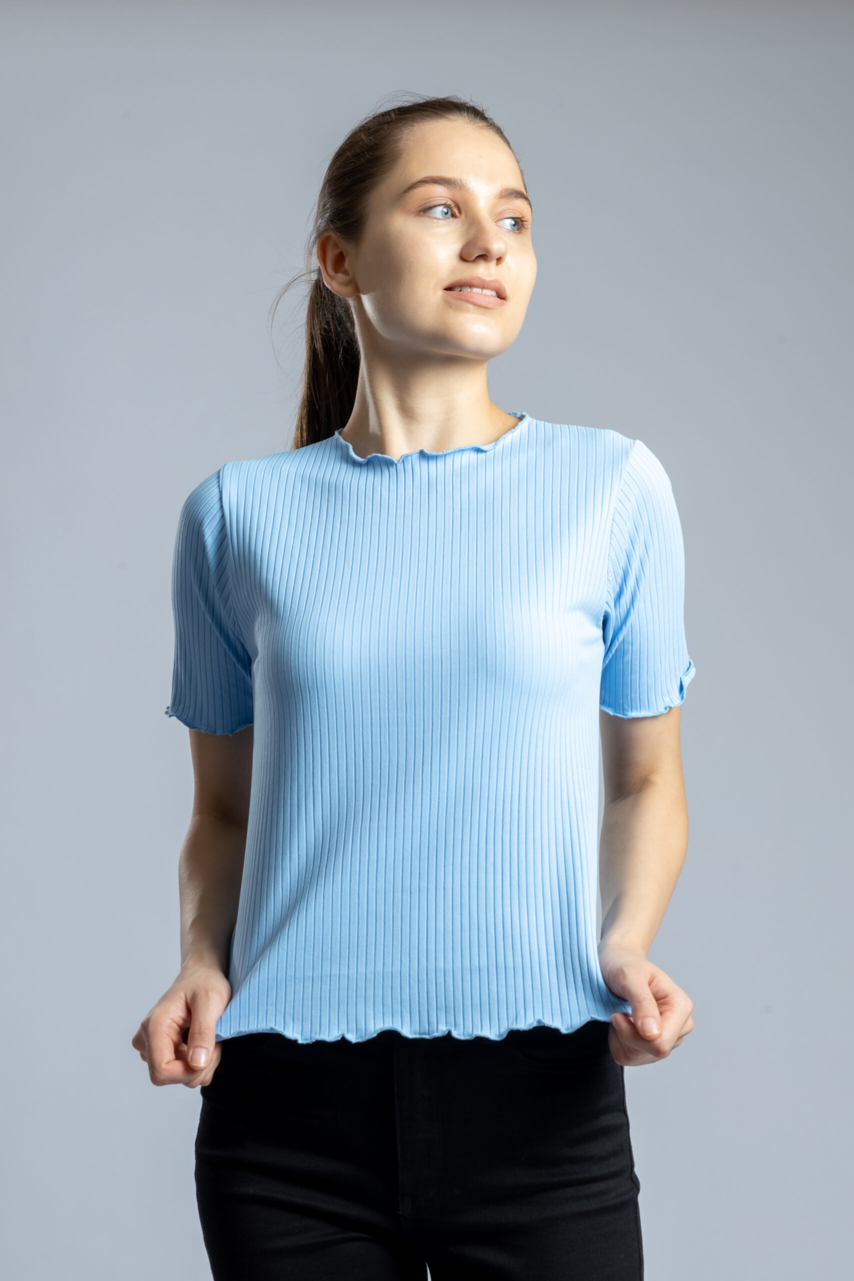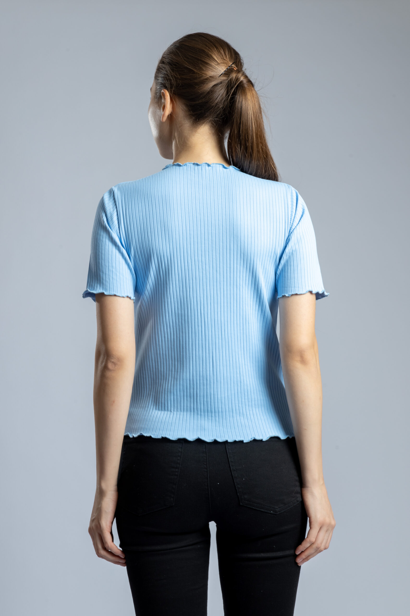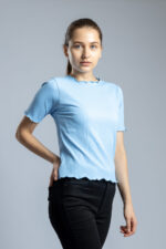 Women’s Full Sleeve Ribbed Knit Slim Fit Stretch Top Sky Blue