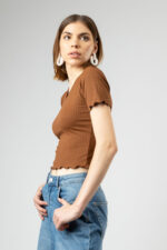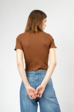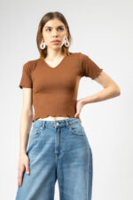 Women’s Full Sleeve Ribbed Knit Slim Fit Stretch Top Coffe