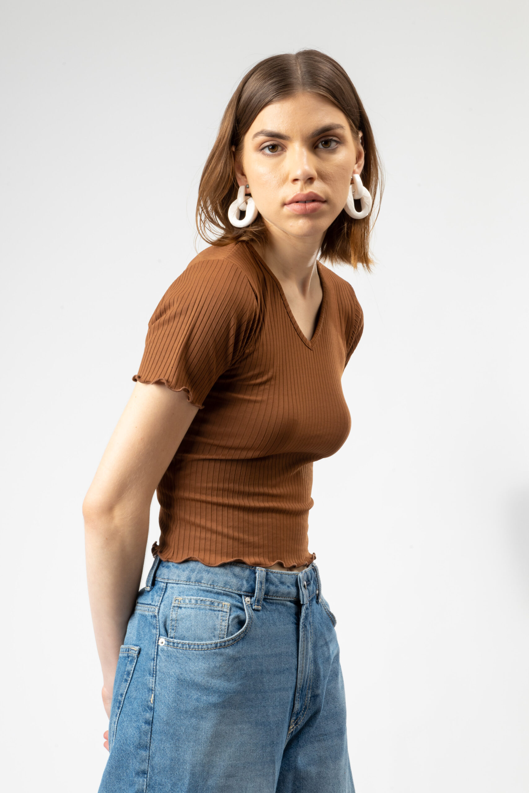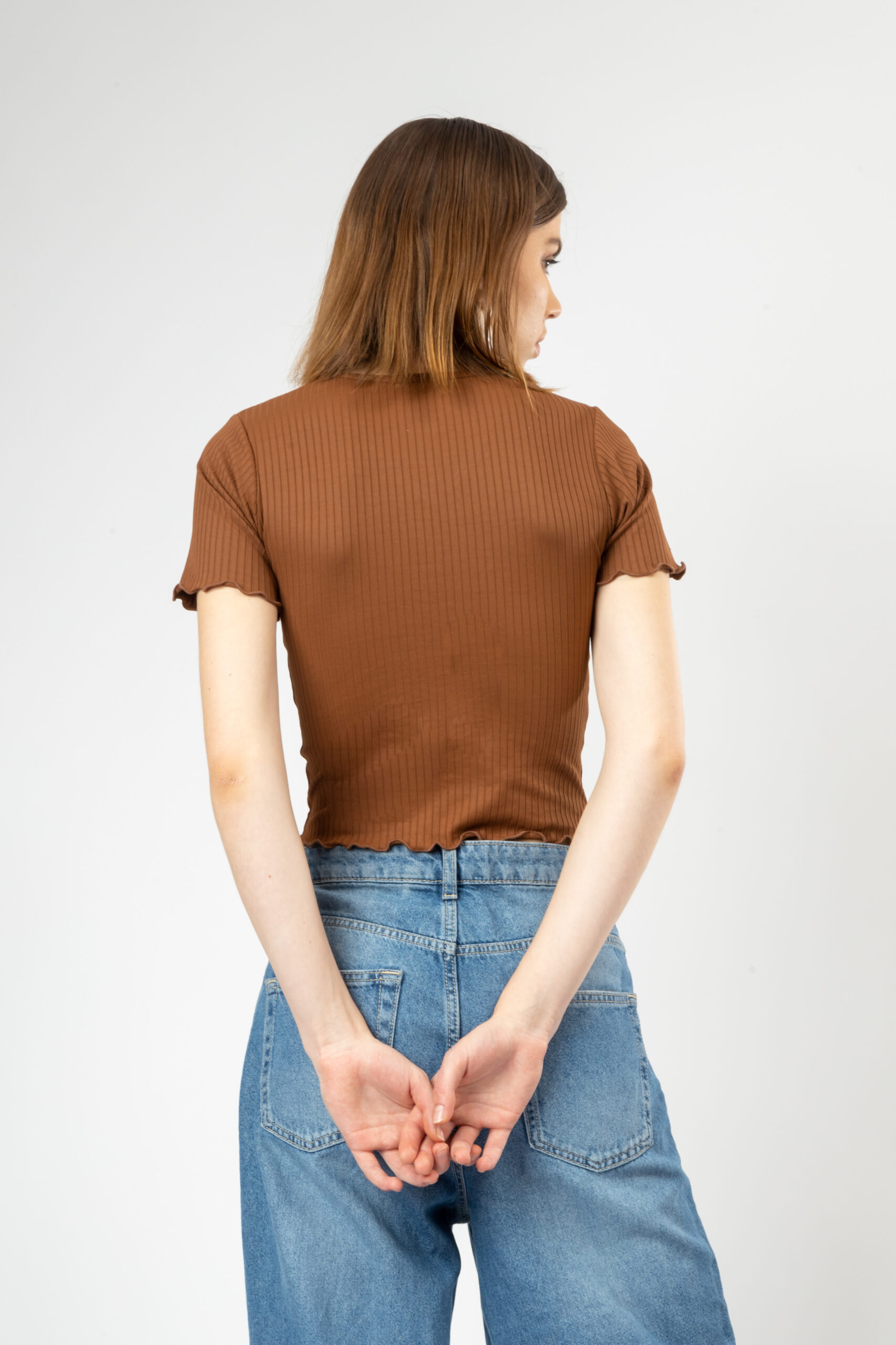 “Discover effortless style and comfort with PYR8’s versatile everyday essential. Expertly crafted from a soft ribbed knit blend of 65% polyester and 35% cotton, this top offers a lightweight and breathable feel that keeps you comfortable all day long. The stretchable fabric ensures a flattering fit while allowing freedom of movement for your busy lifestyle.