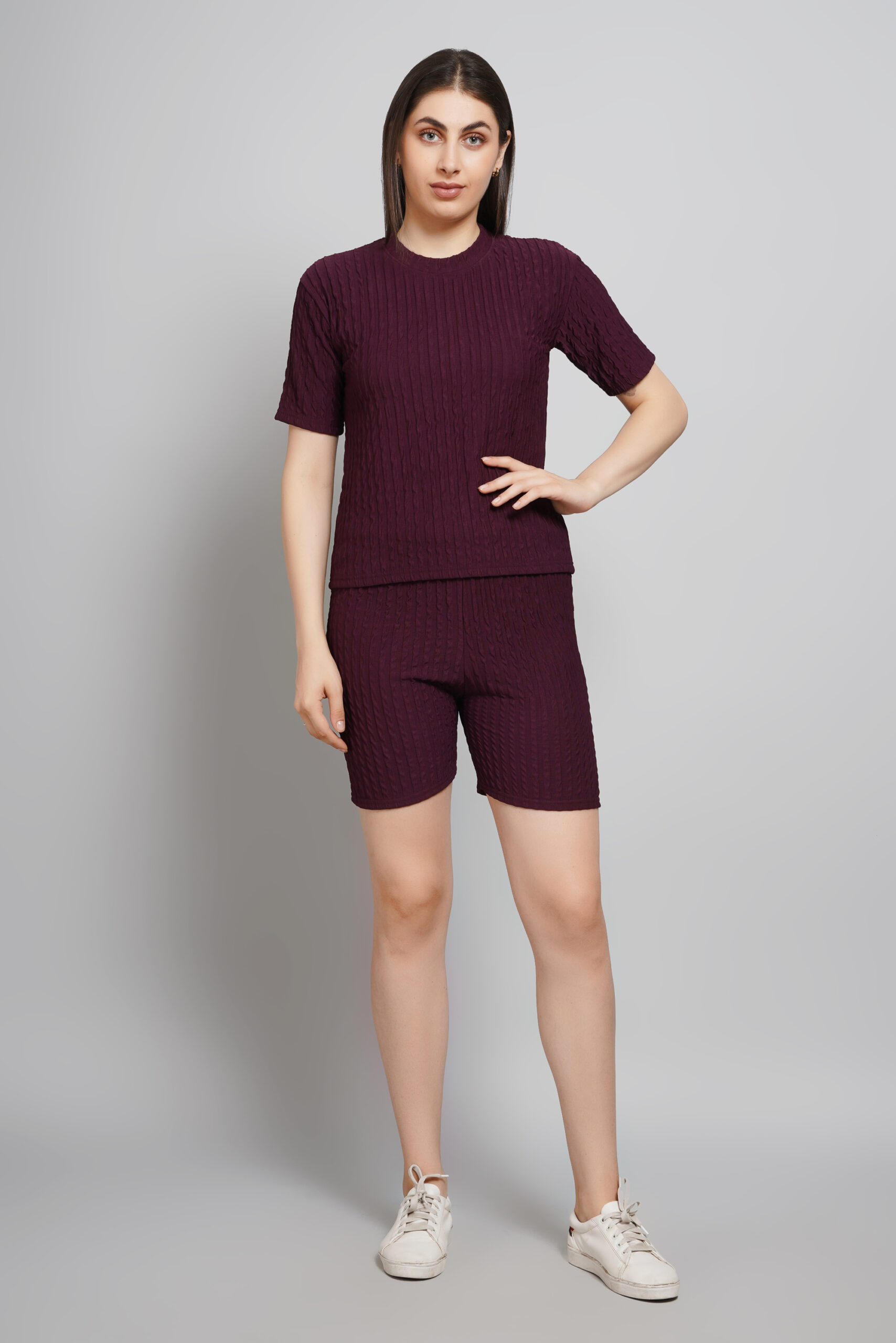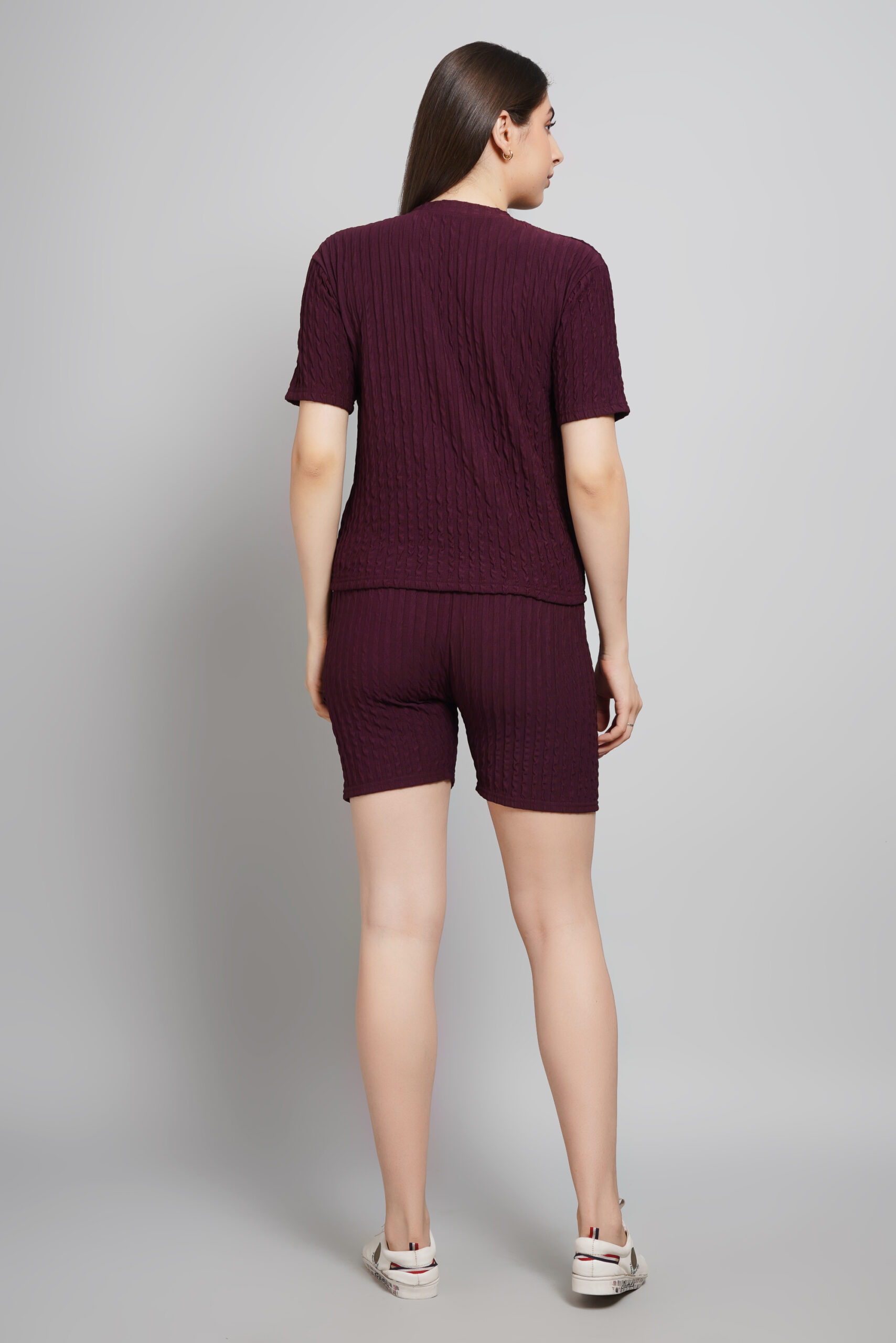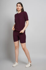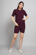 Bowncy Half Sleeves Co-Ords Set For Women Maroon