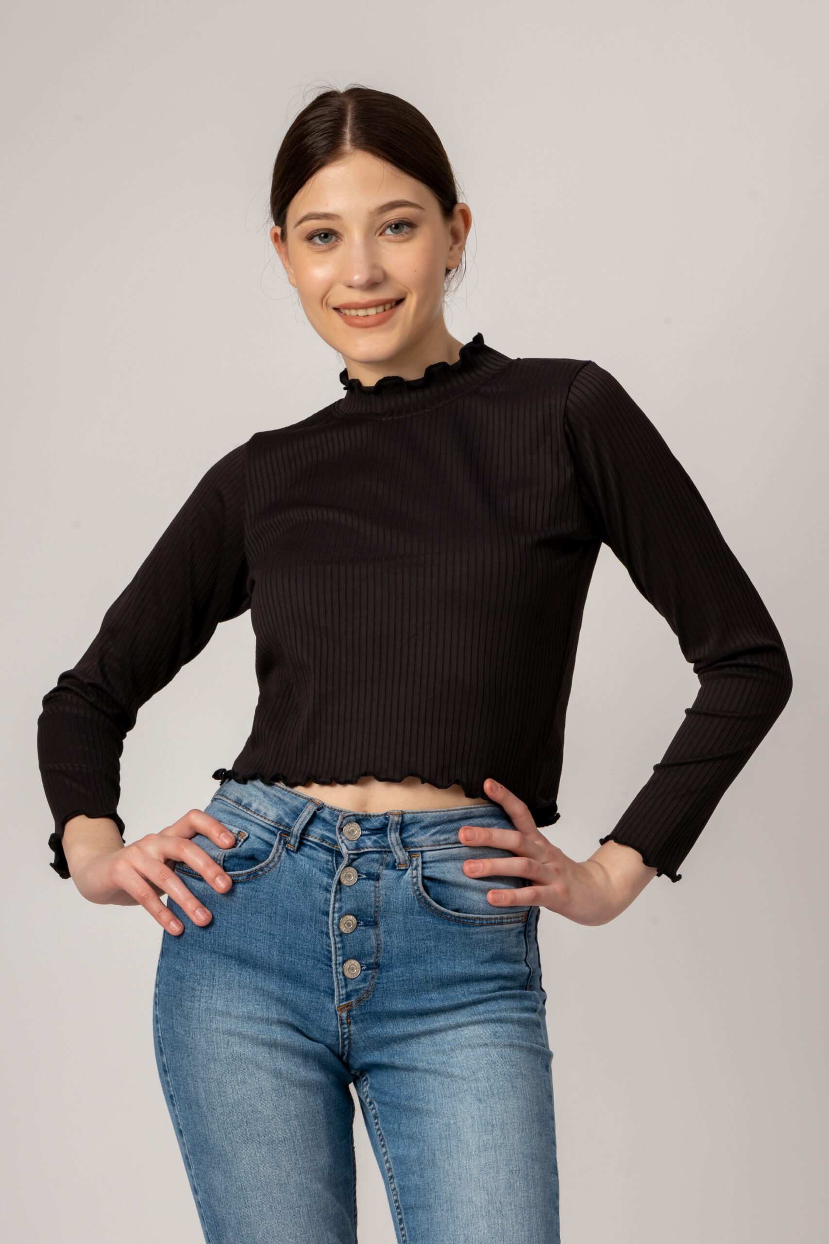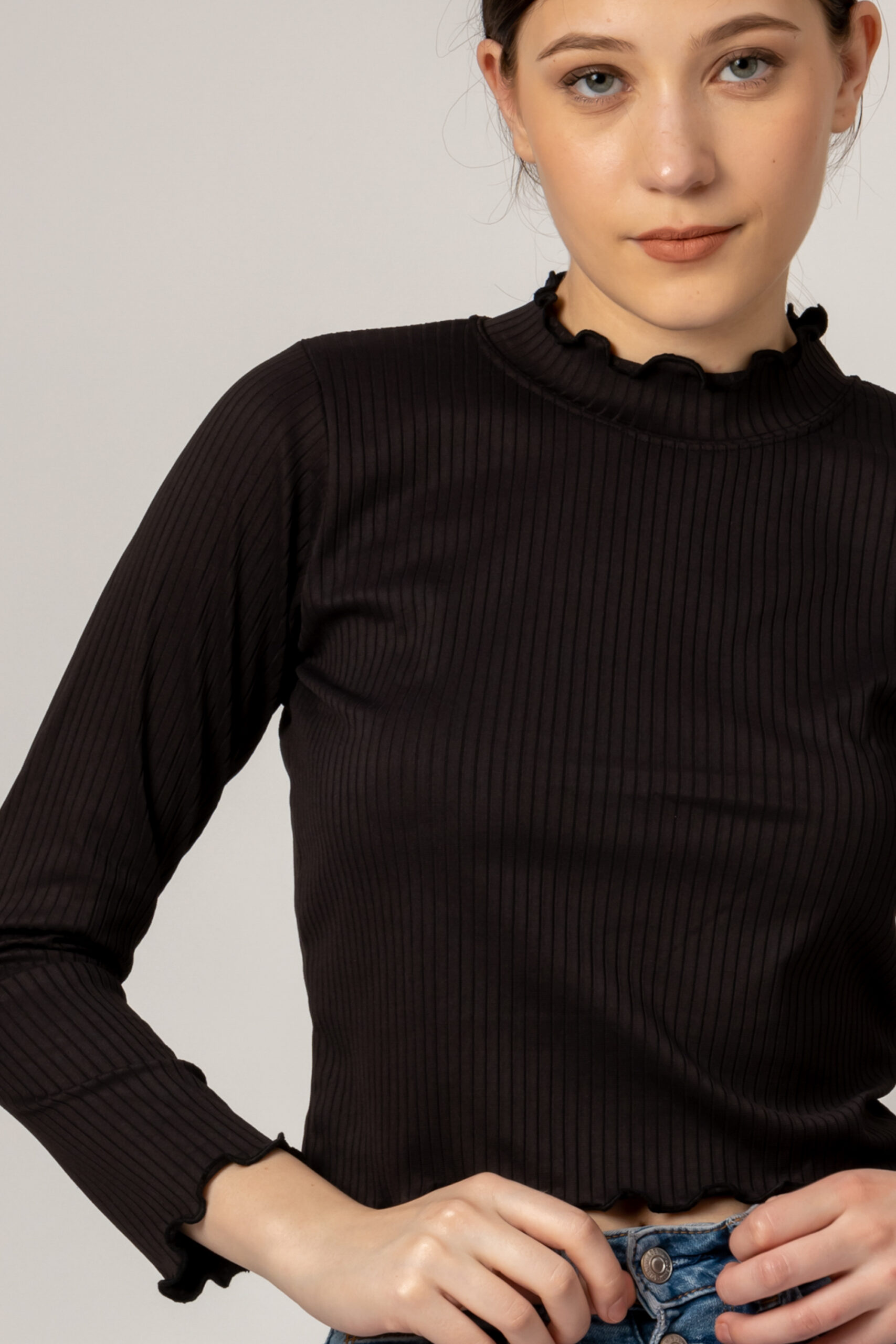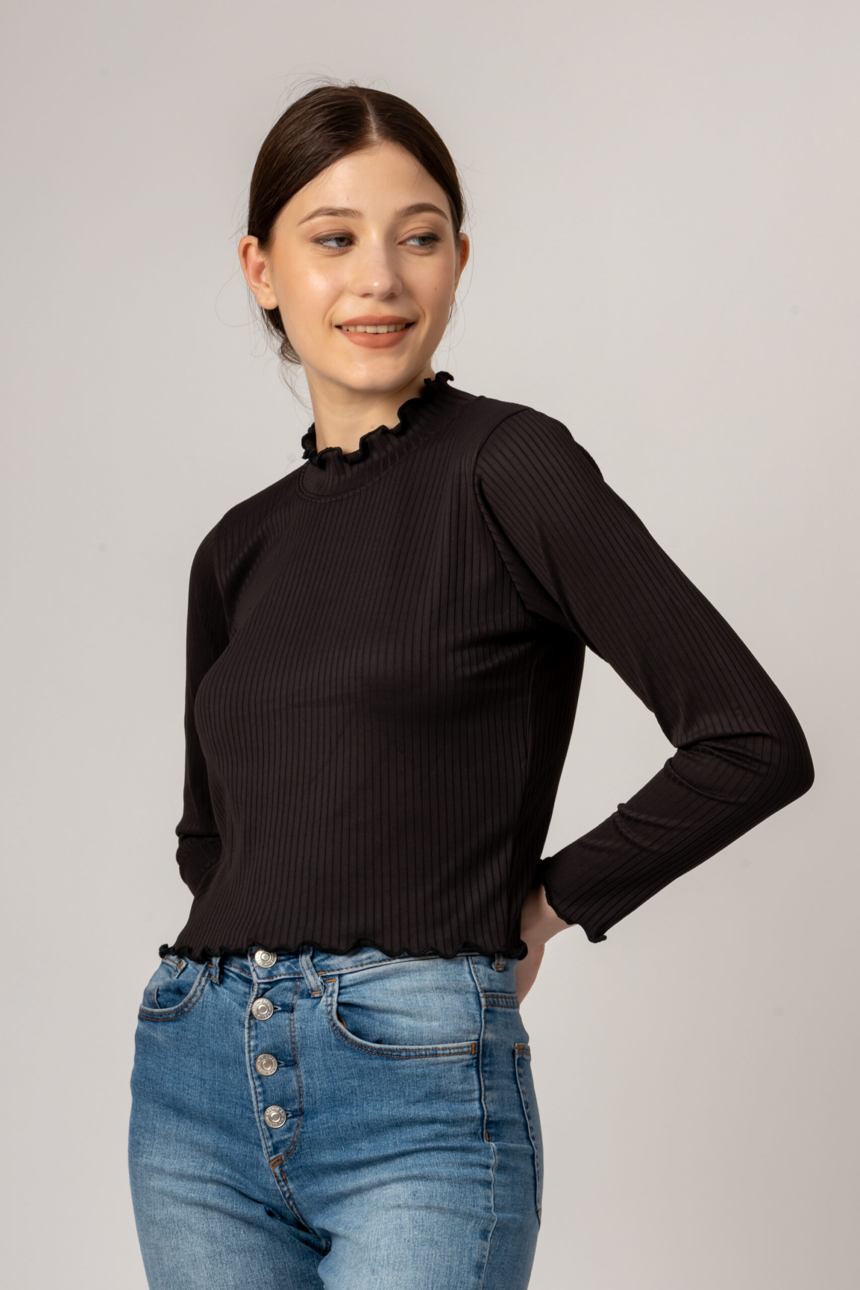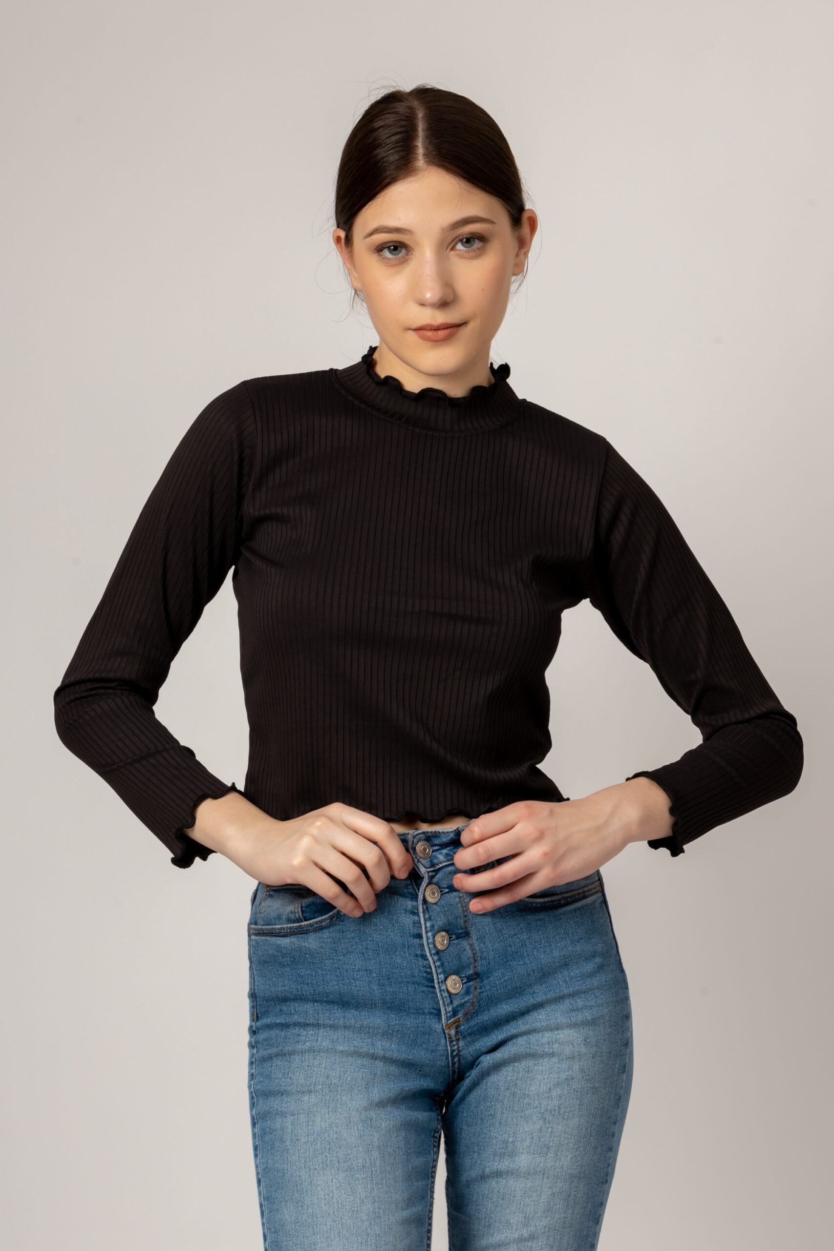 Women's Full Sleeve Ribbed Knit Slim Fit Stretch Top