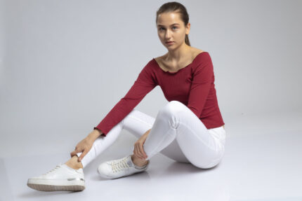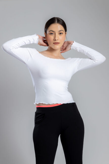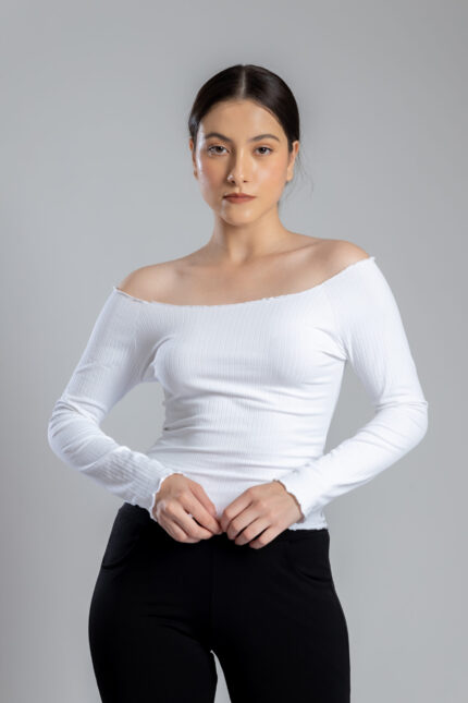 Off-Shoulder Full Sleeve Babylock Top for Women White