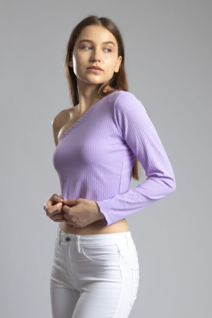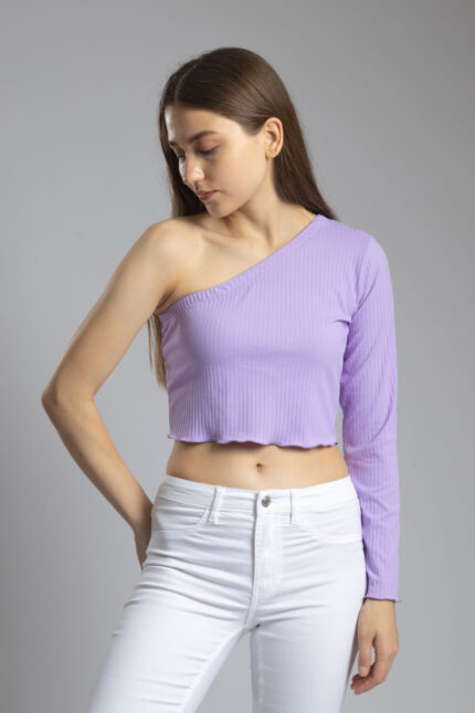One-Shoulder Full Sleeve Babylock Top Lavender