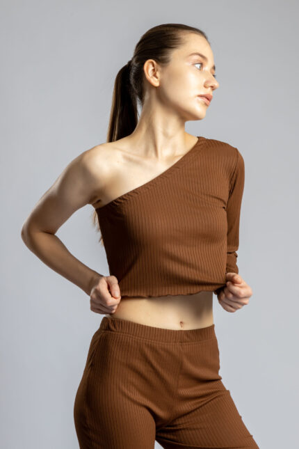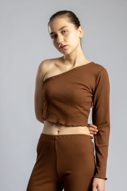 One-Shoulder Full Sleeve Babylock Top Coffee