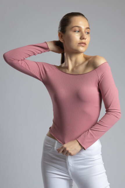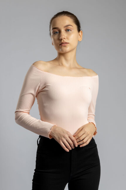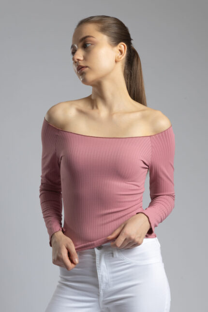 Off-Shoulder Full Sleeve Babylock Top for Women Pink
