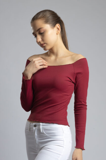 Off-Shoulder Full Sleeve Babylock Top for Women Maroon