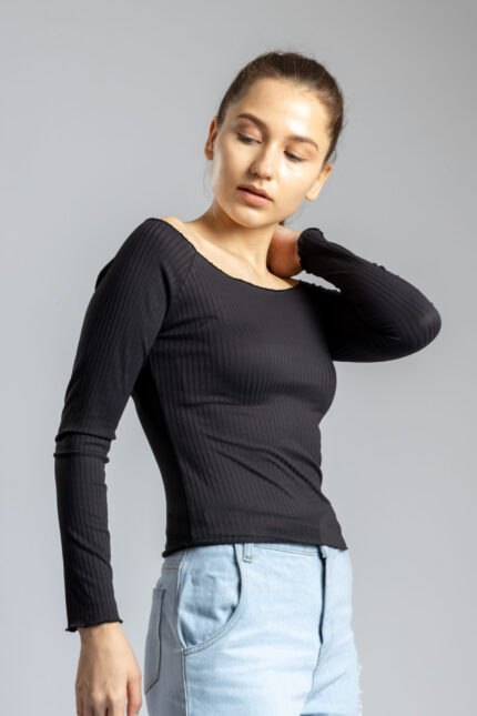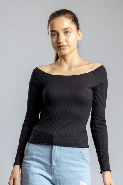 Off-Shoulder Full Sleeve Babylock Top for Women Black