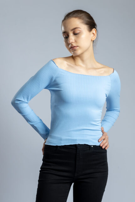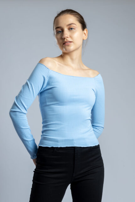 Off-Shoulder Full Sleeve Babylock Top for Women Sky Blue