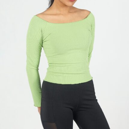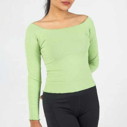 Off-Shoulder Full Sleeve Babylock Top for Women Olive
